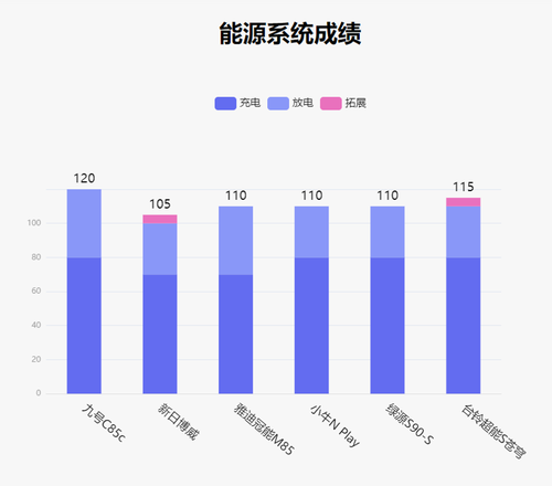 电动车能源系统排行根据电动车智能状态当中的电池容量、充电时间、电池保护系统、能量回收系统和外沿拓展能力实验室考核评分。
