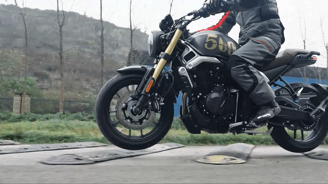 在整个摩托车职业都在为减震问题而头疼时,VOGE渐渐的开端在研究,怎么让前后减震器在车身侧倾工况下同步紧缩和回弹、或必定速度行进在剧烈路面上前后减震器可以康复到平衡位置的呼应时刻差被控制在0.1S内。